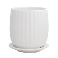 シンプルなフォルムの清潔感あふれる白い陶器鉢「オスト」。艶を抑えたマット仕上がりです。 ■受け皿付き ■穴あり ■釉薬陶器 艶なし